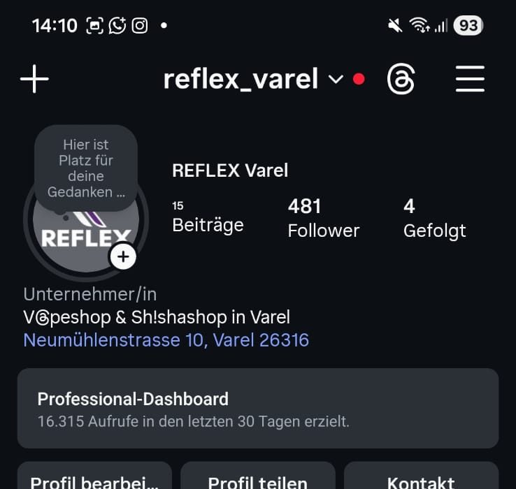 Seit Februar 2025 bieten wir erstklassige Beratung im Bereich E-Zigaretten und Shisha in der friesischen Wehde an. Unser Ziel ist es, Ihnen die besten Produkte und die hochwertigsten Shisha-Tabake anzubieten, während wir stets kundenorientiert arbeiten. Unsere zentral gelegene Verkaufsstelle, direkt neben Ala Turka und dem Bismarckplatz ist barrierefrei und ermöglicht es uns, jeden Kunden individuell und umfassend zu betreuen. Vertrauen Sie auf unsere Expertise und erleben Sie den Unterschied in der REFLEX Welt!